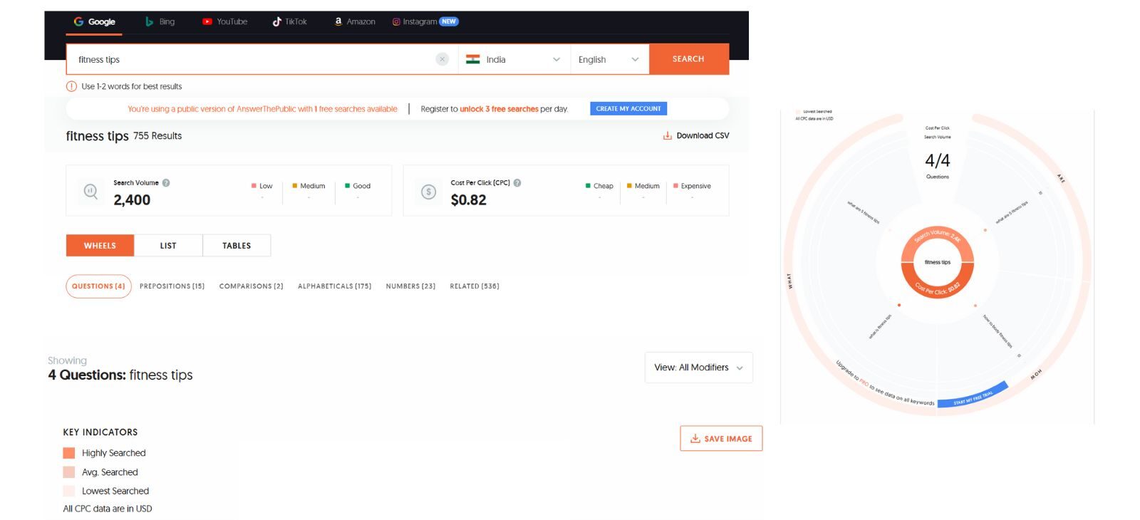 If content is king, AnswerThePublic is your royal advisor. It gives you direct access to your audience’s thoughts, questions, and pain points.